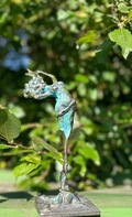 Denne smukke skulptur, Stjernebærer, forener jord og himmel i én elegant og kraftfuld form. Kvindefiguren-moderjord, der rejser sig med rank ynde og holder en stjerne mod himlen, symboliserer håb, drømme og vores uendelige forbindelse til universet. Hendes rodede fodfeste på jordens overflade vidner om balance mellem det jordnære og det åndelige.